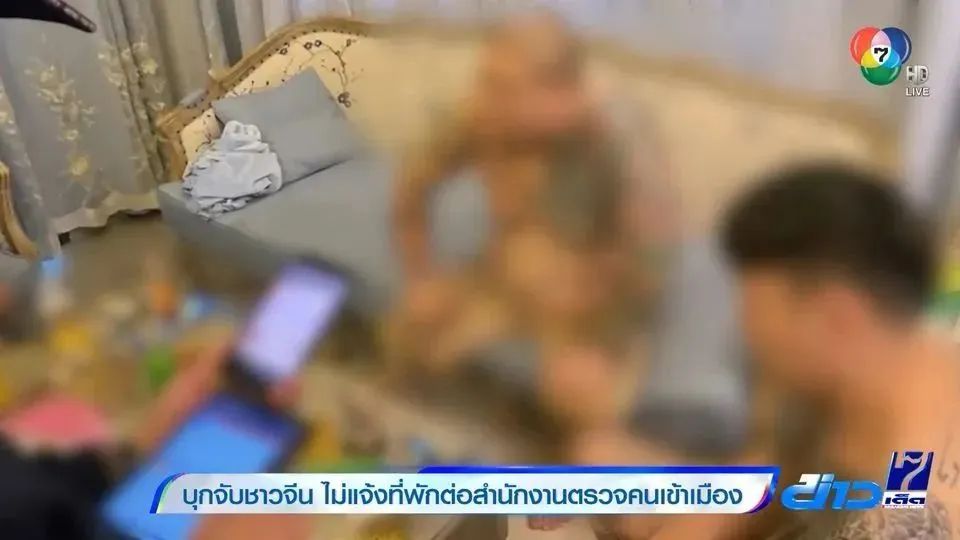 第一栋被查房屋中住着1名中国女子和2名泰国人,警方检查了该女子的护照与签证,之后搜查第二栋房屋,发现3名中国男子和1名泰国女子。