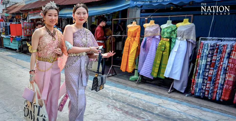 据当地一家服装租赁店表示,在泰国传统的新年节日期间,泰国传统服装的需求量很大,尤其是女性游客。该店的经营者补充说,泰国传统丝绸服装的美丽对女性尤其有吸引力。