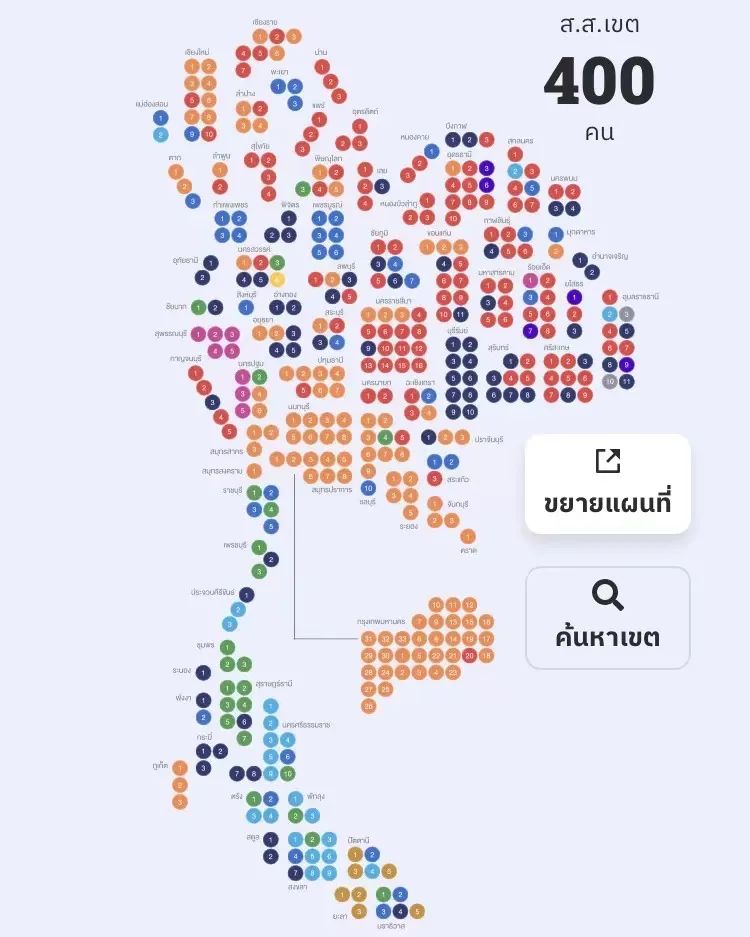 各选区投票情况显而易见,皮塔带领的远进,几乎以迅雷不及掩耳之势占领曼谷所有选区,泰国的几大城市,如普吉、春武里,甚至是前总理他信的故乡清迈,竟然都是远进的票数远占上风!大量城市白领和年轻一代的支持,让在民调结果不如为泰党领袖的情况下成功逆风翻盘。