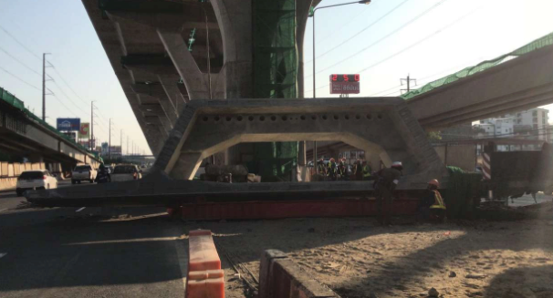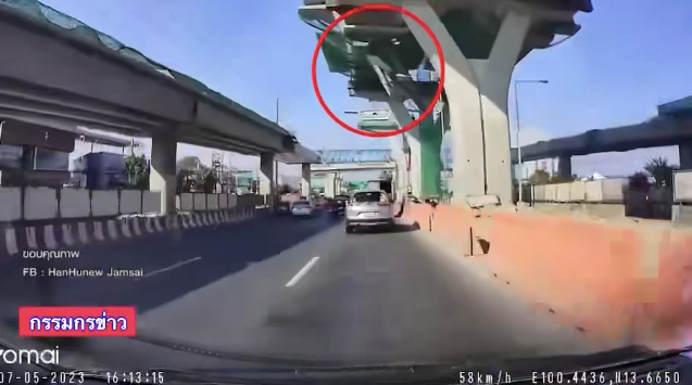 好危险!据泰媒报道,昨天在曼谷拉玛二路(Bang Khun区Samae Dan 街道蛇神庙对面的 index living mall 前),一块巨大的混凝土板从建设中的高架高速公路上坠落,压死了一名建筑工人,造成一人受伤,并损坏了八辆汽车! 警方随后赶到现场,在繁忙的路段中间发现一根3米宽、10米长、重达数吨的混凝土梁。 混凝土梁压死了 54 岁的建筑工人 Worawut Pannon;现场还有八辆汽车受损,四辆在进站路上,四辆在出站路上。一名 40 岁的男子 Sumeth Kirimek 说,他正从华欣开车回来时,突然看到这一情况后紧急转向以避免被掉落的石板击中。他的轮胎爆裂,挡风玻璃破碎,车顶凹陷。 他还抱怨说,将近两个小时都没有官员到达现场。 泰国高速公路管理局(EXAT)局长 Surachet Laopoolsuk 对此表示:“我在下午4点17分接到报告,项目工作人员正在协调损害赔偿;承包商将负全部责任。施工工作将停止 7 天,以调查事故的真正原因,并详细检查工程安全性。” “我们对死者表示哀悼,并为这一事件道歉。我们一直强调最高级别的安全性,并将采取额外措施以避免再次发生此类事件。”