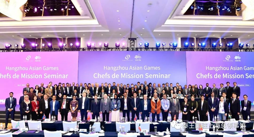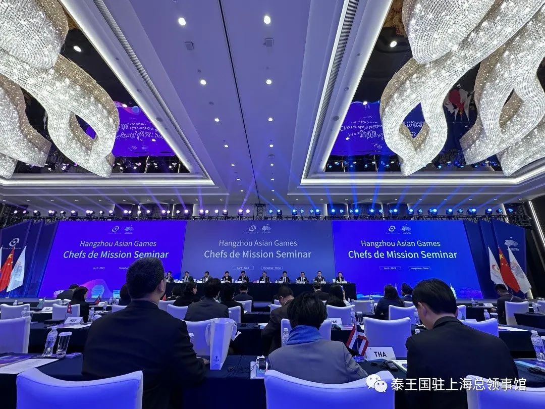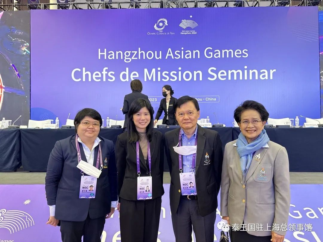 泰国做好准备参加第十九届杭州亚运会 ประเทศไทยเตรียมเข้าร่วมการแข่งขันเอเชี่ยนเกมส์ ครั้งที่ 19 ที่นครหางโจว 2023年4月25至26日,泰国奥组委在泰国运动员领队塔纳·差布拉习和泰国奥组委副秘书长素匹·莎玛习多教授的带领下,及泰王国驻上海总领事馆代表陈慧琳领事一行,共同在浙江省杭州市参加了“杭州亚运会代表团团长大会”,旨在为泰国参加第十九届杭州亚运会做好准备。 วันที่ 25 – 26 เมษายน 2566 คณะกรรมการโอลิมปิคแห่งประเทศไทย ในพระบรมราชูปถัมภ์ นำโดยนายธนาไชยประสิทธิ์ หัวหน้าคณะนักกีฬาไทย และ รศ. ดร. สุพิตร สมาหิโตรองประธานคณะกรรมการโอลิมปิคแห่งประเทศไทยฯรวมทั้งนางสาวนภัสสร เอี่ยมสุรนันท์ กงสุล ผู้แทนสถานกงสุลใหญ่ฯ ได้เข้าร่วมการประชุมChefs de Mission Seminarณ นครหางโจว มณฑลเจ้อเจียง เพื่อเตรียมการเข้าร่วมการแข่งขันเอเชี่ยนเกมส์ครั้งที่ 19 ของคณะนักกีฬาไทย 本次会议共有来自全球45个国家近100名代表参加,大家共同了解了本次亚运会目前在各个方面上的准备工作。同时,还向大家传递了相关的赛会政策,如:比赛场地、运动员注册、国际旅行条件及物流运输、新闻媒体等方面的相关政策。此外,亚组委还安排与会人员共同参观了本次亚运会的主要运动场地及运动员村。 การประชุมฯ ซึ่งมีผู้แทนจากประเทศต่าง ๆ เข้าร่วมจำนวนประมาณ 100 คนจาก 45 ประเทศ ได้รับทราบพัฒนาการการเตรียมการจัดการแข่งขันฯ ในประเด็นต่าง ๆ และนโยบายที่เกี่ยวข้อง อาทิ สนามแข่งขัน การลงทะเบียนการเดินทางและระบบขนส่ง สื่อมวลชน ฯลฯนอกจากนี้ เจ้าภาพยังได้จัดให้คณะผู้แทนเยี่ยมชมสนามแข่งขันหลักและหมู่บ้านนักกีฬา 谨此,本次第十九节杭州亚运会将于2023年9月23日至10月8日在杭州举行,同时浙江省还将设有五个分赛场,分别是:宁波市、温州市、湖州市、绍兴市、金华市,共同组成本次亚运会。 อนึ่ง การแข่งขันเอเชี่ยนเกมส์ ครั้งที่ 19 จะจัดขึ้นระหว่าง 23 กันยายน – 8 ตุลาคม 2566 ที่นครหางโจวและอีก5เมืองในมณฑลเจ้อเจียงซึ่งร่วมเป็นเจ้าภาพด้วย ได้แก่หนิงโป เวินโจว หูโจว เส้าซิง และจินหัว