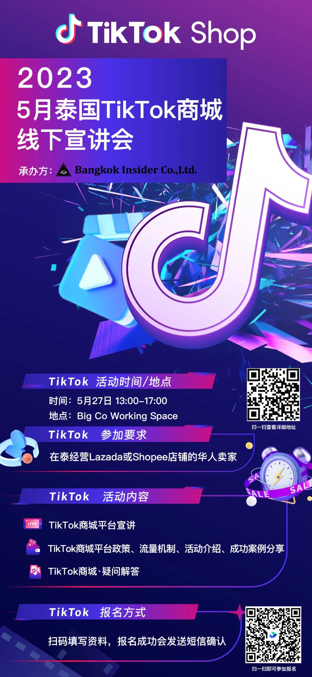 呼叫所有在泰电商人集合!5月27日(下周六)我们将在曼谷举行2023泰国TikTok商城线下宣讲会!