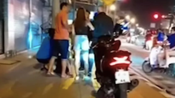 目击者31 岁的 Pom 告诉记者,她在凌晨 3 点骑摩托车经过现场时发现一群人在吵架,她决定停下来查看情况,发现一名西方男子在人行道上暴力袭击一名中国男子。