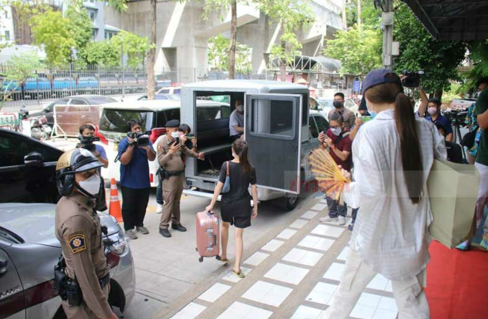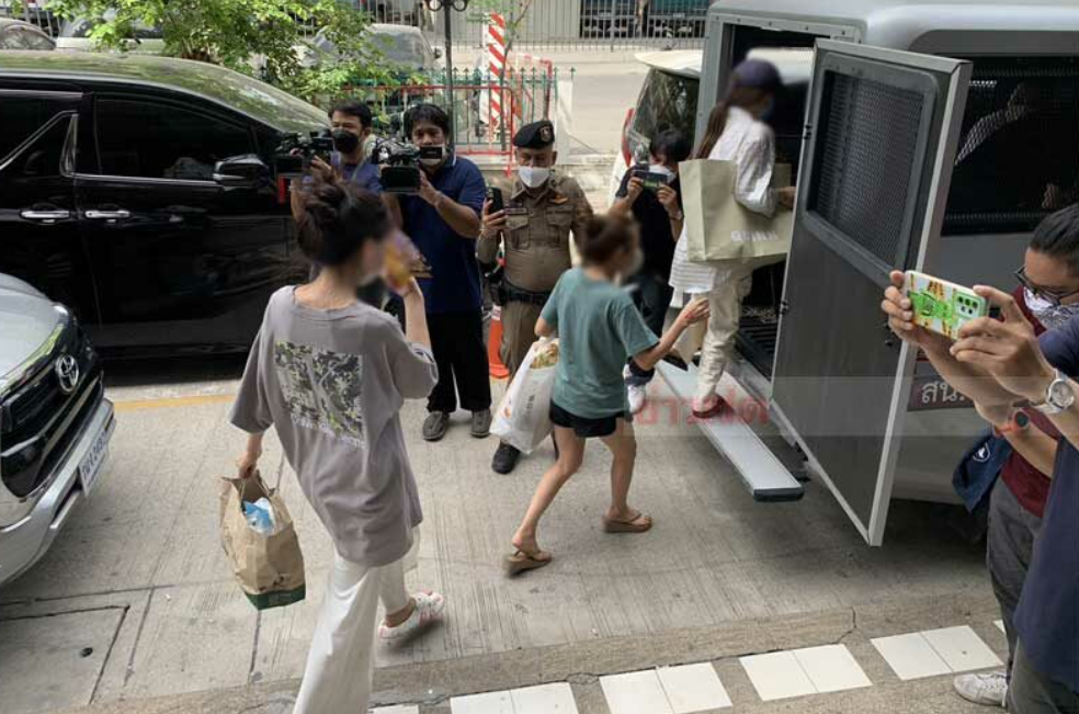 今早,警察局的调查人员将涉案人员移交给法院,在这起案件中,调查人员将被告人分派到3个警局,分别是辉煌区警局14人、Din Daeng警局18人、Makkasan警局24人,其中52人被控在泰国持有1类毒品,3人被控在泰国非法居留,1人被控无正当理由在公共场所携带枪支。因此,其中52人被移交给拉差达刑事法院,3人被移交给曼谷北部地方法院,1人被移交给军队法院,此人是在娱乐场所非法携带枪支的泰国人。目前已有被告亲属出面申请保释,法院目前正在处理保释申请。