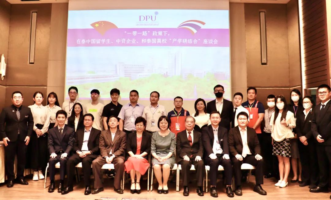 泰国高校管理层代表、在泰中国留学生代表、中资企业代表一起举行了座谈交流会,对目前中国留学生比较关注的在泰工作签证、在泰应聘需求、校企合作人才培养以及实习相关问题均有进行探讨交流。