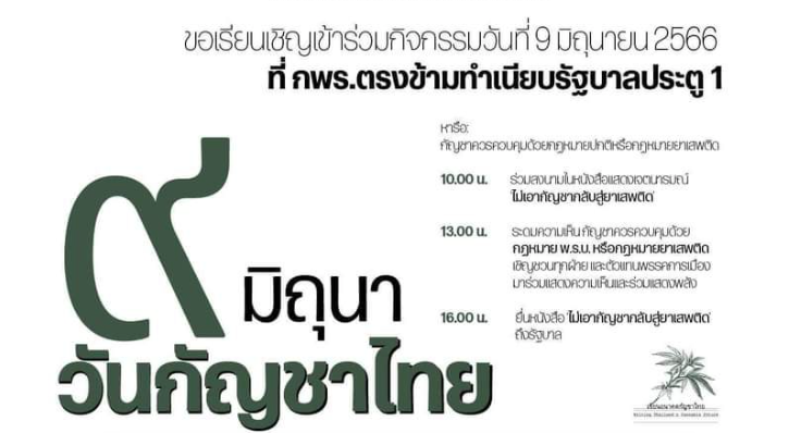 据泰媒报道,一群大麻支持者宣布,他们将于 6 月 9 日在议会前庆祝所谓的“泰国大麻日”。