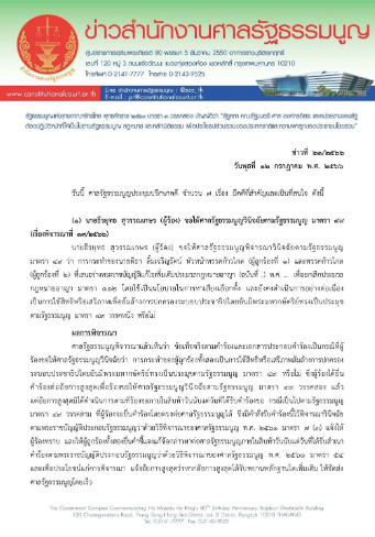 泰国宪法第 98(3)条规定,禁止任何报纸或大众媒体企业的所有者或股东行使竞选国会议员的权利。泰国宪法第101(6)条规定,国会议员的地位因违反第98条的要求而被终止。
