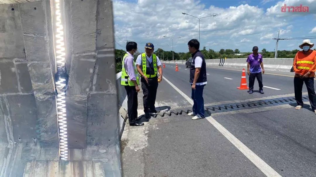近日,曼谷13号公路办公室副主任Supachok Meampol先生透露,有关部门已经前来视察,发现桥梁交叉口的接缝之间存在缝隙,这是由于气温变化,导致接缝变宽。有关部门表示,该裂缝已有11-14厘米宽,相对车辆而言还是安全的,车辆的危险距离是按照车辆宽度来算的。