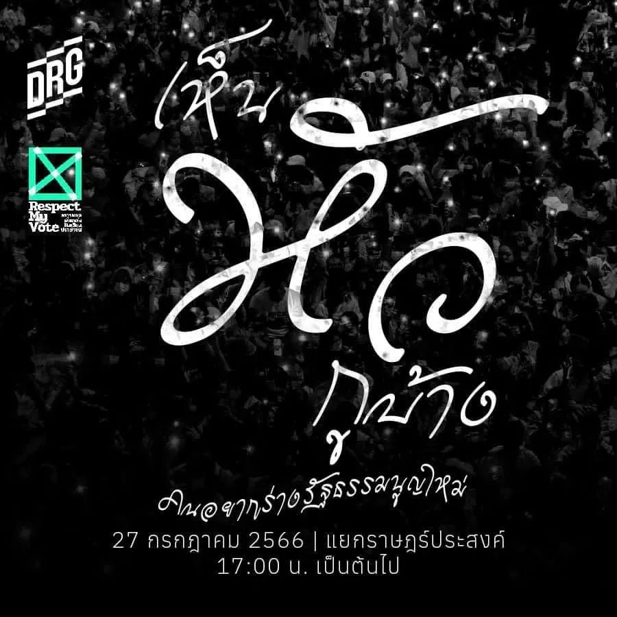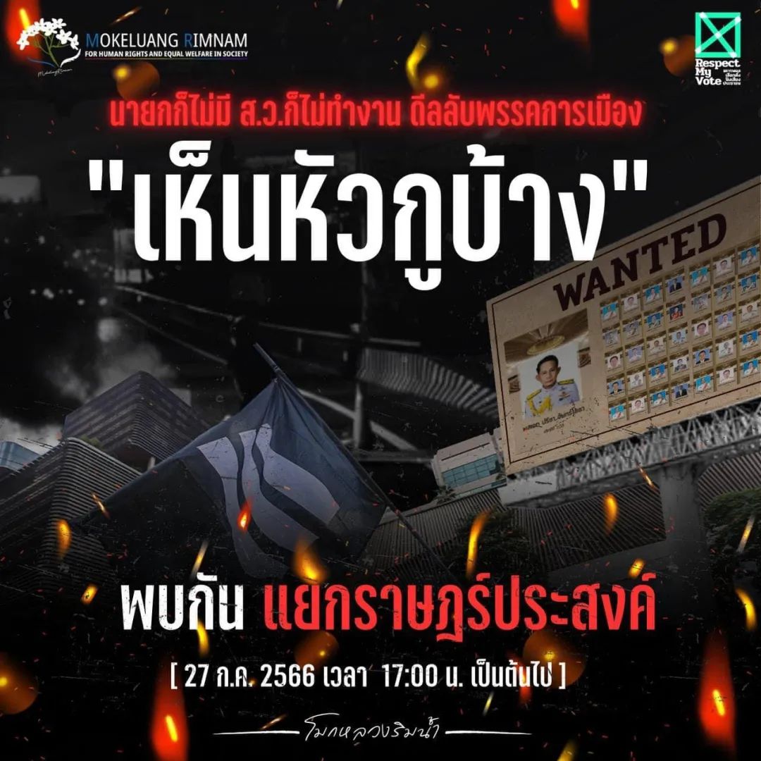 2023年7月26日晚,泰国知名学府法政大学的学生组织了集会,强烈抗议上议院践踏民主选举成果,各群体代表上台发表演说,并庆祝他信生日,最后以给参议员的“火葬仪式”收尾。
