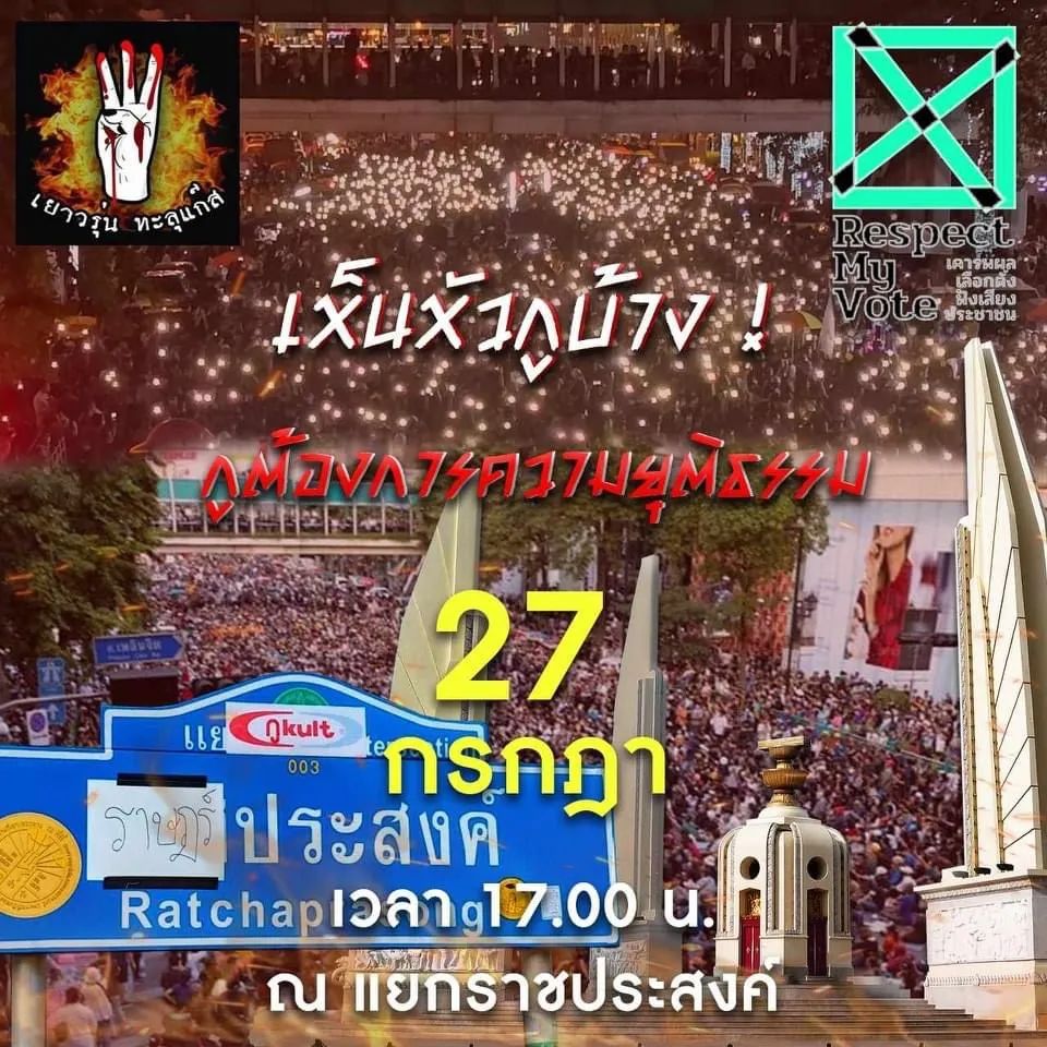 随后,泰国网络上的许多与民主运动有关的主页,纷纷发布信息,邀请民众参加于7 月 27 日下午 5:00 在 Ratchaprasong路口(四面佛)处举行的集会活动。极具威慑力的海报还配文说:“请准备好您的黑衣。”、“选举已过整整3个月,却没有选出总理,上议院仿佛堵塞河流的鳄鱼一样,阻碍着民众们的意愿,其中不知道还有多少政党的秘密交易,理事会会议也被推迟。”