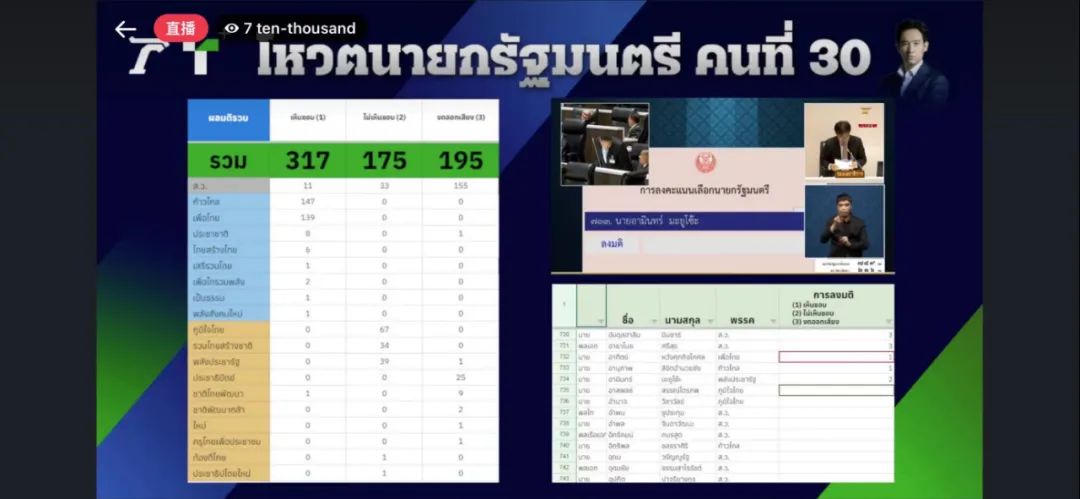 泰国总理竞选首轮投票结果:唯一提名人皮塔失败!未达足够票数!