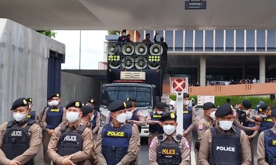 在皮塔被迫离开议会现场后,中午12时20分左右,曼谷 Thahan路入口处议会大厦前的示威者开始躁动起来,很多人开始走到议会大赦的围栏前抗议不公平。