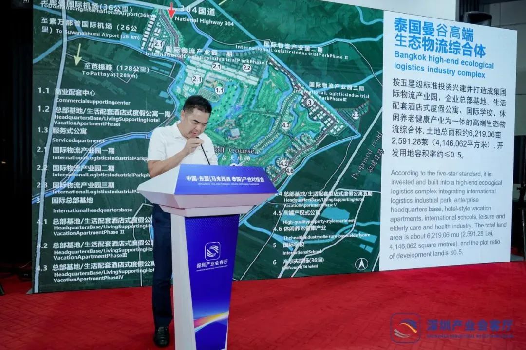 我会名誉会长、铭可达集团董事长郑明强作为嘉宾介绍泰国投资营商环境。铭可达创立于1991年,立足深圳,布局东南亚,2017年,响应“一带一路”倡议,到泰国投资发展,曼谷项目总占地面积360多万平方米,计划总投资超百亿元人民币。项目距离东部经济走廊(EEC)仅2公里,距离素万那普国际机场26公里,地理位置占优,交通便利。铭可达投资兴建并打造泰国曼谷高端生态物流综合体,服务在泰国投资和发展的中国企业。在建的项目——第一期中泰综合物流产业园,占地面积81000平方米,计划打造成集仓储、配送、电商、供应链管理的国际物流产业园总部基地。泰国处于东南亚中心位置,东盟国家物流绩效指数排名第二,具有很大的市场潜力。总的来说,泰国优越的地理位置、完善的基础设施、便利的交通运输及泰国政府稳定的投资促进政策,都促使泰国成为外商投资者青睐的投资热土。