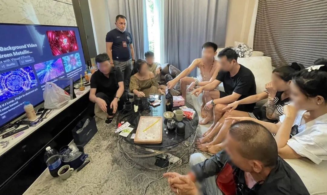 据泰媒报道,2023年8月11日下午2时30分,泰国曼谷Bang Chan警察局警长Siwat Srivichai上校及其团队逮捕了几名涉毒的外国人。警察局接到知情人士举报,称Sapansong区一处豪宅内常有外国人聚众吸毒,且高声播放音乐,已经严重影响了周边居民的生活。警方在接到报告后立刻前往现场,展开详细调查。最终在Sapansong区Thap Chang 街道Kanchanaphisek路的一处住宅内,当场拘捕9名嫌疑人,并将检查上述房屋的持有性是否合法。