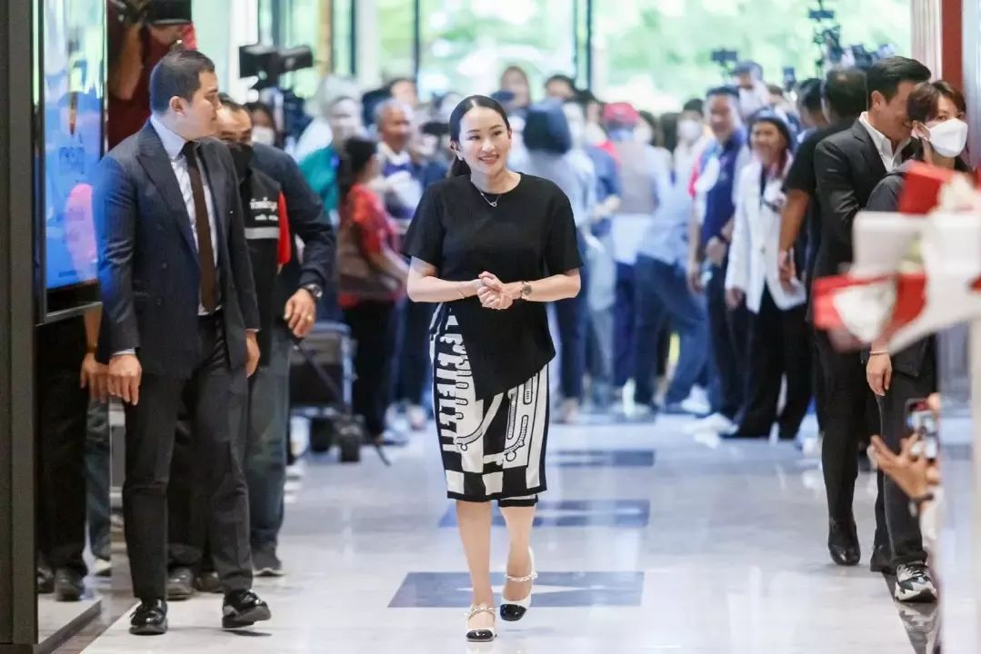 随后,下午13时左右,贝东丹女士透露了他信的病情,表示从抵达泰国开始,他信先生就有不适应的症状,因焦虑和疲惫被送往警察医院。自己最近一次与父亲会面的时候,父亲同样也有此症状,令人担忧。他信先生曾经感染新冠病毒,曾进入ICU治疗9天,住院1个月,所以肺部出现了问题。父亲很高兴见到她,不过依然感到焦虑和疲惫。贝东丹从未要求搬到私立医院,请社会相信, 会让父亲自己决定是否请求皇室赦免。