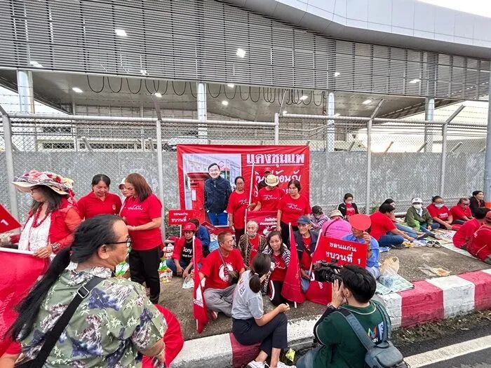 上午9时左右,他信所乘坐的私人飞机顺利降落在廊曼机场。上午9时30分左右,他信在廊曼机场客运大楼前,向国王画像致敬,值得一提的是,这一幕与多年前何其相似!随后他信挥手向民众致意,多名“红衫军”支持者已在廊曼机场迎接。据悉,他信自2008年以来多次宣布回国,但直到今日才成功踏上泰国的土地。