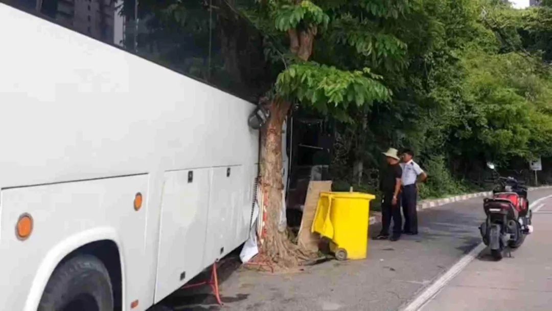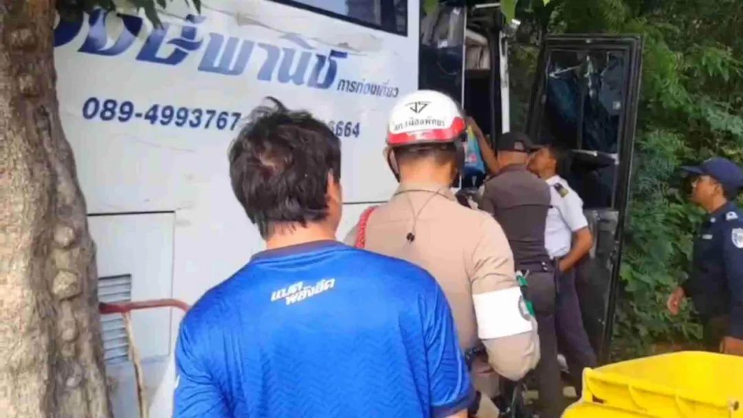 今日,芭提雅警察局接到报警,称一辆旅游巴士撞到了一棵树上,车上满是中国游客。事件发生在春武里府挽腊茫区农普鲁街道10组的南芭提雅Balihai码头附近,警方接到报警后立刻赶往现场调查,发现18名中国游客受到了惊吓。幸运的是,没有人受伤。