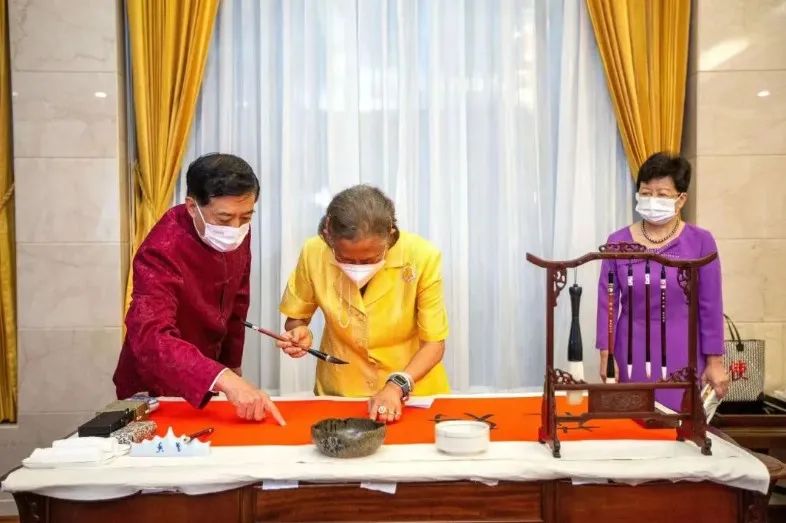 活动结束后,诗琳通公主挥毫题下“花好月圆”,为大家送上美好祝福。