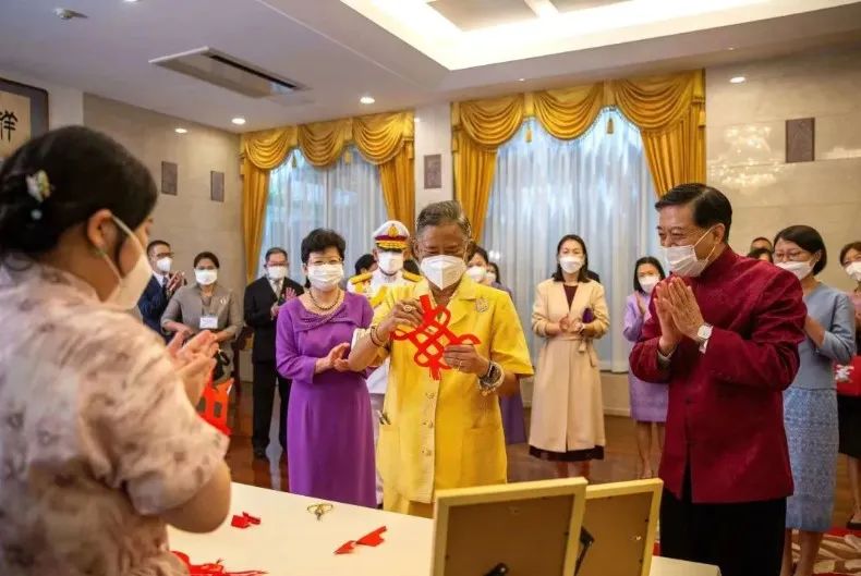 9月30日中午,泰国诗琳通公主应邀莅临中国驻泰国大使官邸做客,共同欢度中秋佳节。