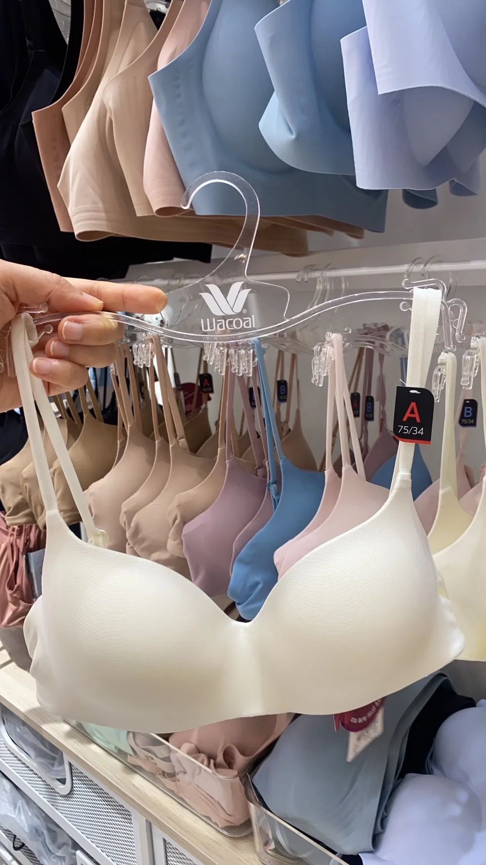 🙋♀️热爱旅行的你Wacoal Mood Travel Bra MM1243 这款无钢圈可卷曲内衣简直不要太方便!这款内衣不易变形,同时又让胸部紧致有型。Wacoal Mood 旅行内衣解决了行李箱空间的难题,随时可以卷起来,这款内衣以泰国的高级天然橡胶作为基础,耐穿还不变形,柔软舒适,还有加厚的胸垫可供选择。