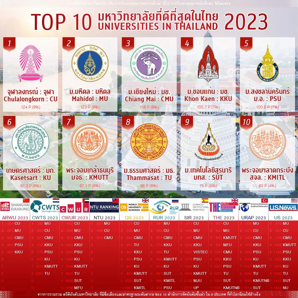 共计849名中国学生正在泰国皇家理工类大学就读。其中,中国学生最多的泰国皇家理工类大学的前三名是:
