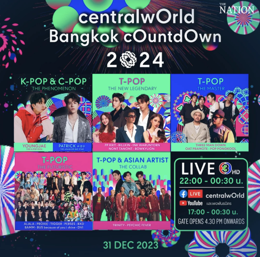 曼谷 CentralWorld 将于 12 月 31 日至 1 月 2 日,举办为期三天的倒计时活动——活动将包括令人眼花缭乱的灯光秀、泰国流行艺术家的现场音乐表演以及烟花表演。