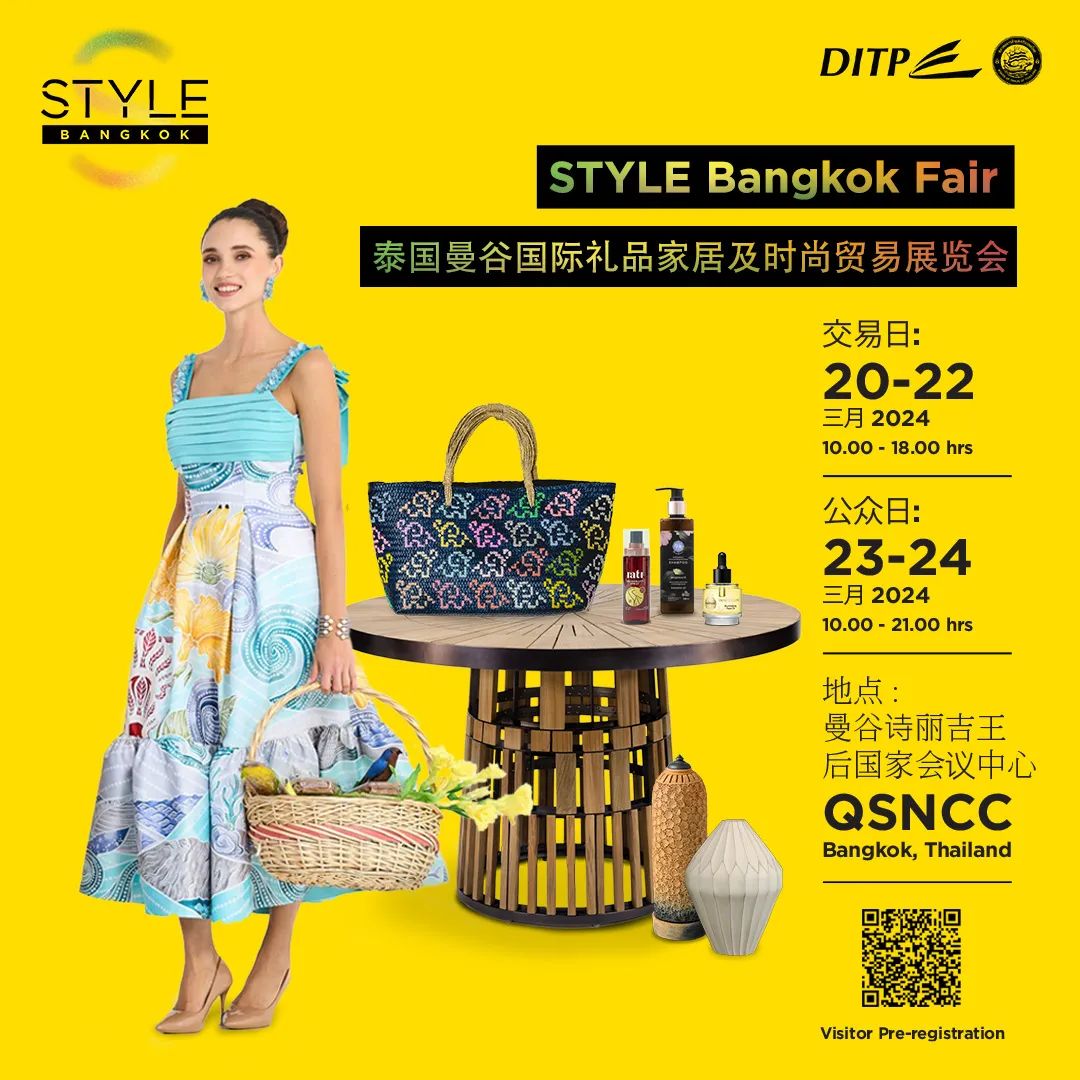 由泰王国商务部国际贸易促进司(DITP)和泰国工业联合会(BOT)联合主办的「2024曼谷生活方式展(2024 STYLE Bangkok Fair)」将于2024年3月20-24日在曼谷诗丽吉王后国家会议中心G层1-4号厅举办,展览面积22,335平方米,近400家泰国和境外展商参展,展位规模约1000个。
