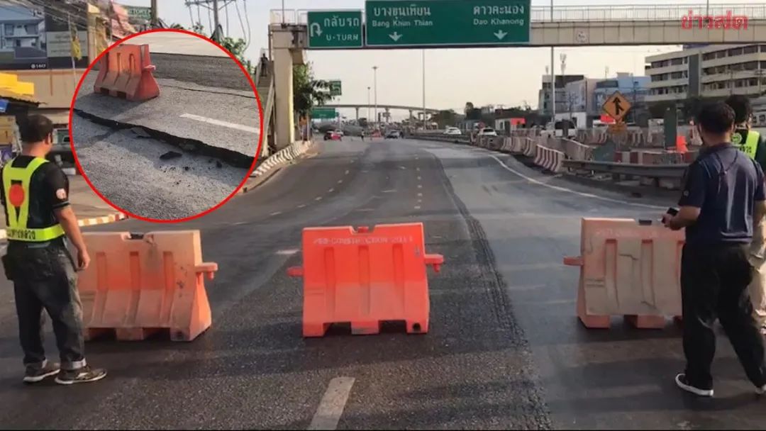 据泰媒报道,2024年1月5日下午4点20分,吞武里公路区副主任Sonthaya Srinual先生检查了拉玛二世立交桥附近的道路塌陷情况: