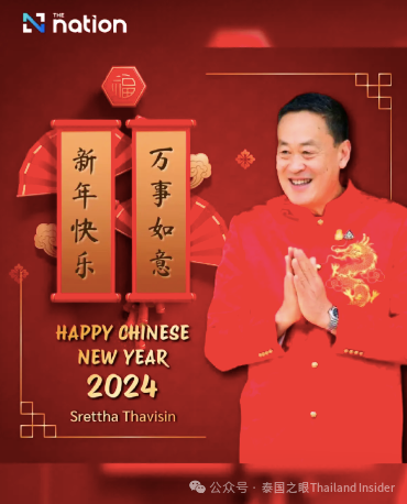 据泰媒报道,在即将到来的农历新年之际,泰国总理兼财政部长塞塔于今日祝愿泰国人民和中国人民新年快乐、繁荣昌盛!