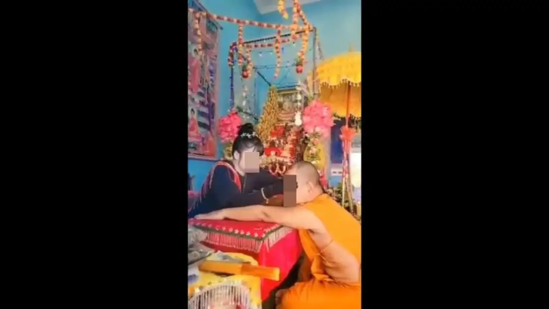 2024年2月6日,据泰媒报道, 近日一段视频在网上流传,一名泰国僧人与一名女子在做法事,这名僧人被反复摸头,女子念念有词地喷洒圣水。
