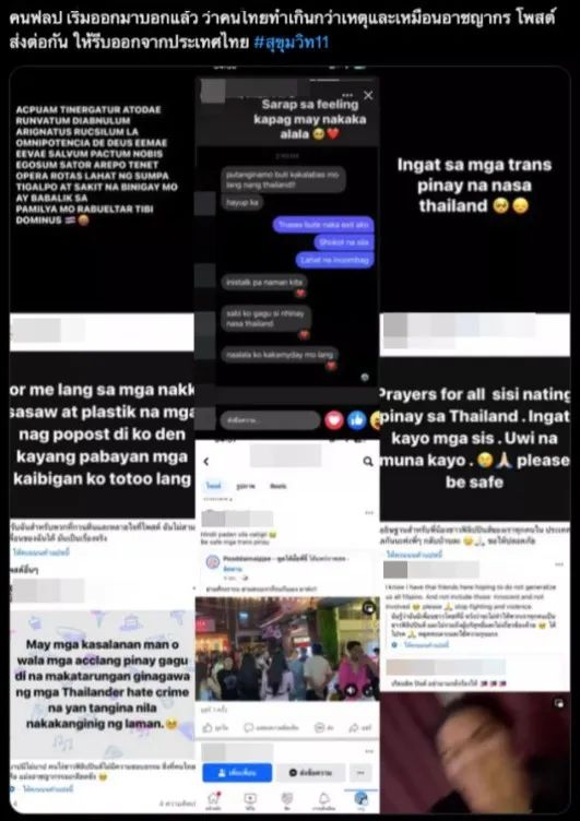 另一名受害者的朋友补充说:“昨晚发生了一场打斗,泰国变性女性先出手,但后来菲律宾变性人叫了大约20人来攻击我朋友。我们认为这是一场种族主义事件,菲律宾的恶霸群攻我们泰国变性群体。现在,曼谷和全泰国各地的变性女性都聚集在一起,因为这关系到我们的尊严和泰国LGBTQ+群体的权益。”