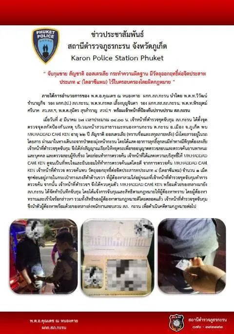 一名澳大利亚人因签证逾期居留以及未支付超过178,000泰铢的医疗费而逃离医院而被捕;一名俄罗斯男子因无证开设大麻店而被捕,被指控无证工作并从事为泰国人保留的工作。