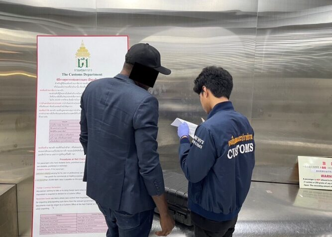 由泰国海关部门与禁毒局 (NACC) 组成的机场拦截特遣部队 (AITF) 联手对此类违法行为严肃查处、严肃查处。